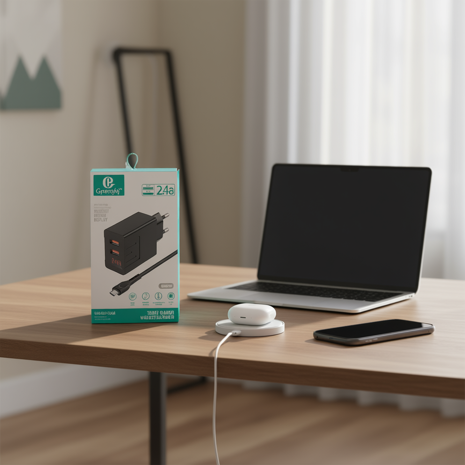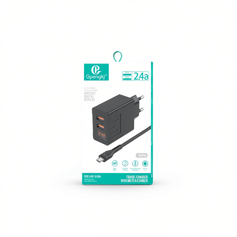 จีเพงเคจ ทัวร์ริ่ง ชาร์จเจอร์ 2.4A ยูเอสบี ดูอัล พอร์ตพร้อมสายเคเบิลสำหรับโทรศัพท์มือถือ