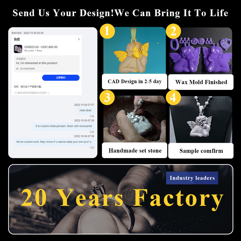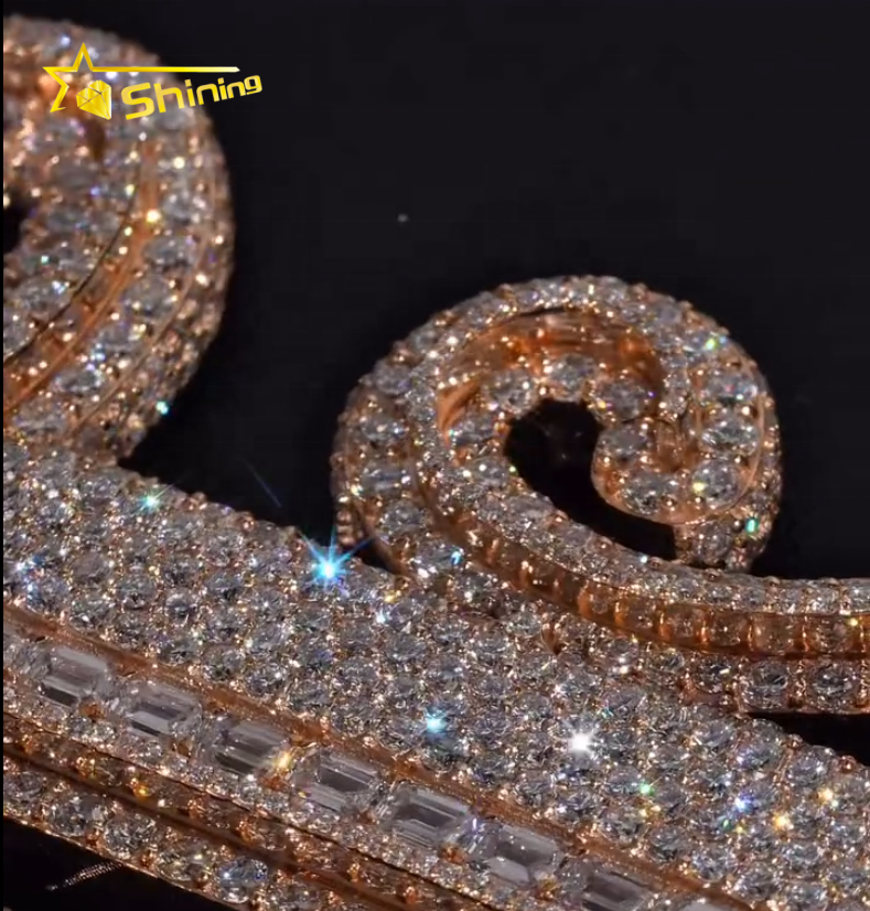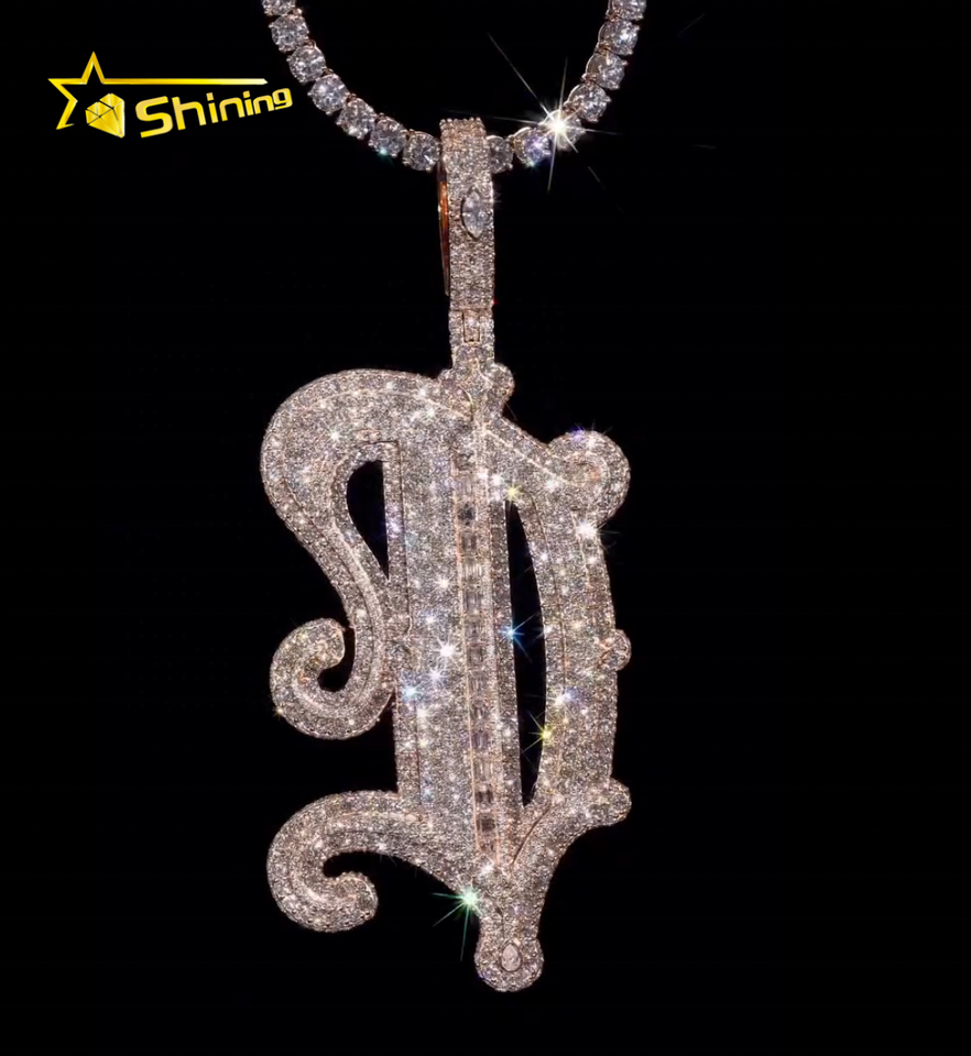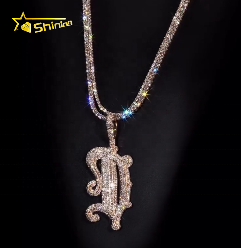 จี้เพชรโมอิสซาไนต์แบบกำหนดเองพร้อมสร้อยคอแบบเทนนิส เงินแท้ 925 ประดับเพชร VVS เต็มเส้น สไตล์ฮิปฮอป