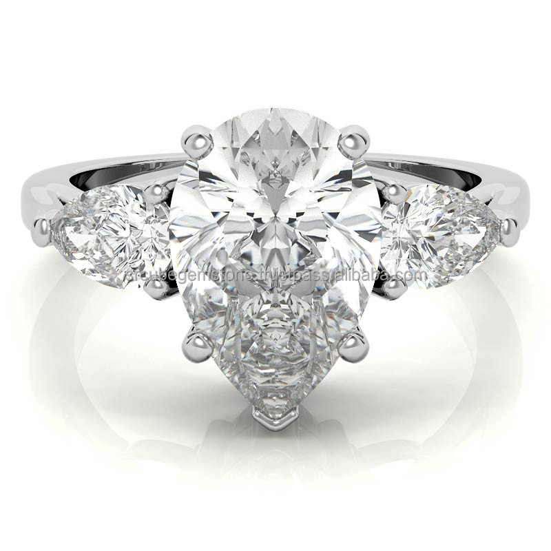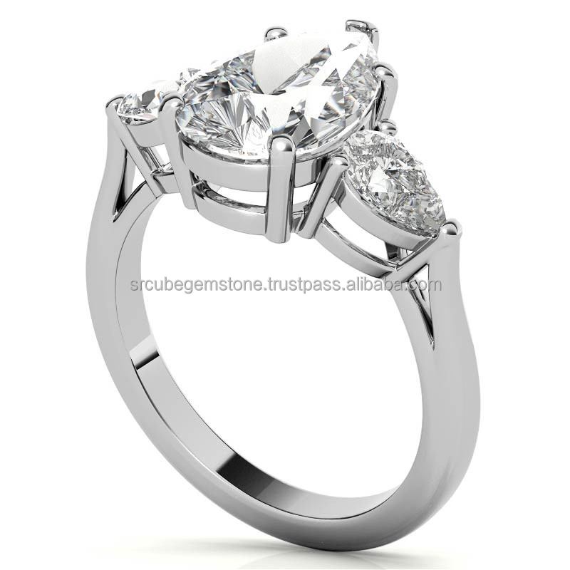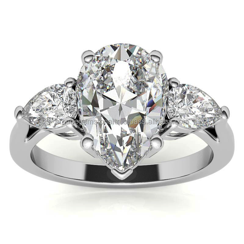 แหวนเพชรทรงลูกแพร์รับรองโดย GRA ตัวเรือนเงินแท้ ชุบทอง ความใส VVS เหมาะสำหรับเป็นของขวัญแต่งงานสำหรับผู้หญิง