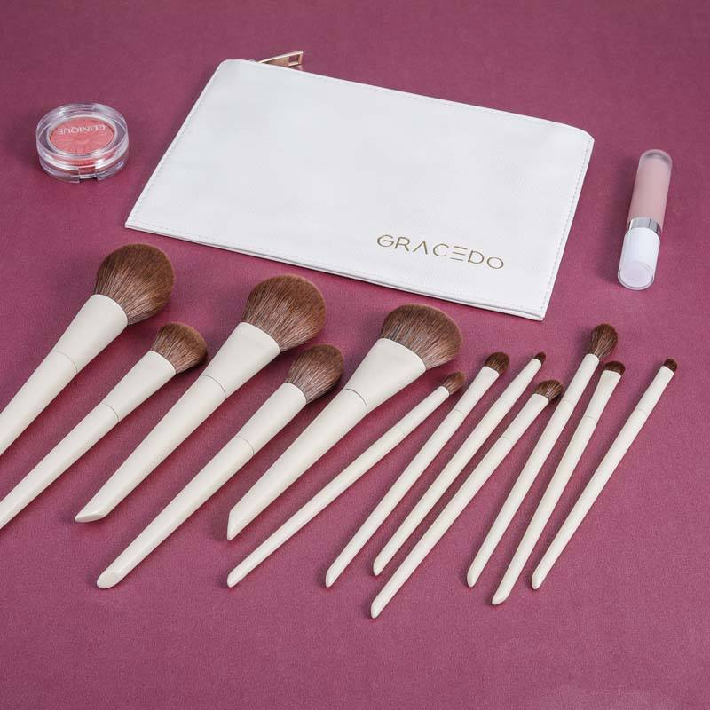 Gracedo 12pcs Vegan Synthetic Hair Makeup Brushes Set Custom Logo Travel Size Luxury Professional Grade Wood Shaving Brush