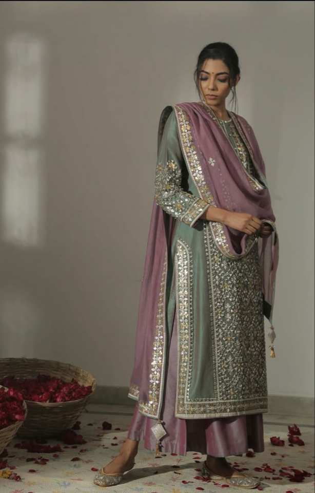 ชุดสلوار คามีซ อะคริลิก สวยสง่า สำหรับงานปาร์ตี้ พร้อมงานปักแบบดั้งเดิมด้วยกอต้า และประกายวิบวับเล็กน้อย แบรนด์ Goodshopping