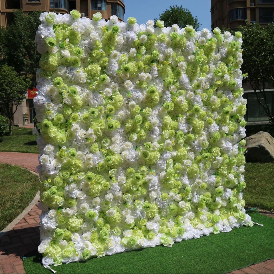 ผนังดอกไม้ประดิษฐ์สไตล์ยุโรปอันงดงาม พร้อมดอกบัวและใบไม้สีเขียว สำหรับตกแต่งฉากหลังงานแต่งงาน งานคริสต์มาส และงานอีเว้นท์ต่างๆ