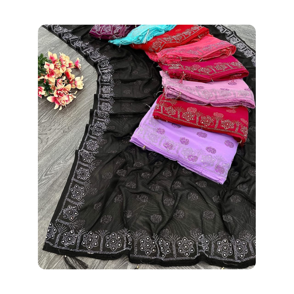 ส่าหรีผ้าชีฟองที่สง่างามพร้อมผิวแวววาวเหมาะสำหรับงานปาร์ตี้และเหมาะสำหรับงานแต่งงาน