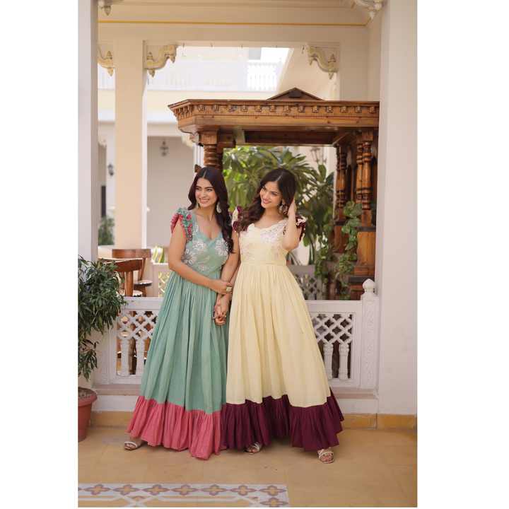 ชุดเดรสอานาร์กาลีทรงสง่างามที่ผสมผสานความศิลปะอย่างประณีต ชุดเดรสอานาร์กาลีแฟชั่นที่มีรายละเอียดงานฝีมืออันประณีต