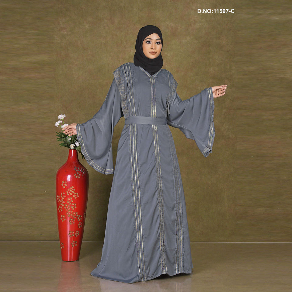 Graceful Full-Length Abaya with Ornate Shoulder Accents in Nida Fabric