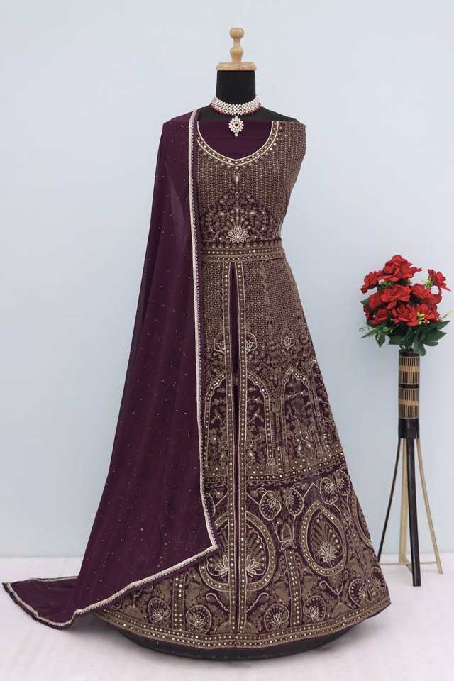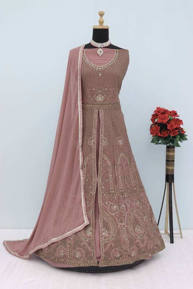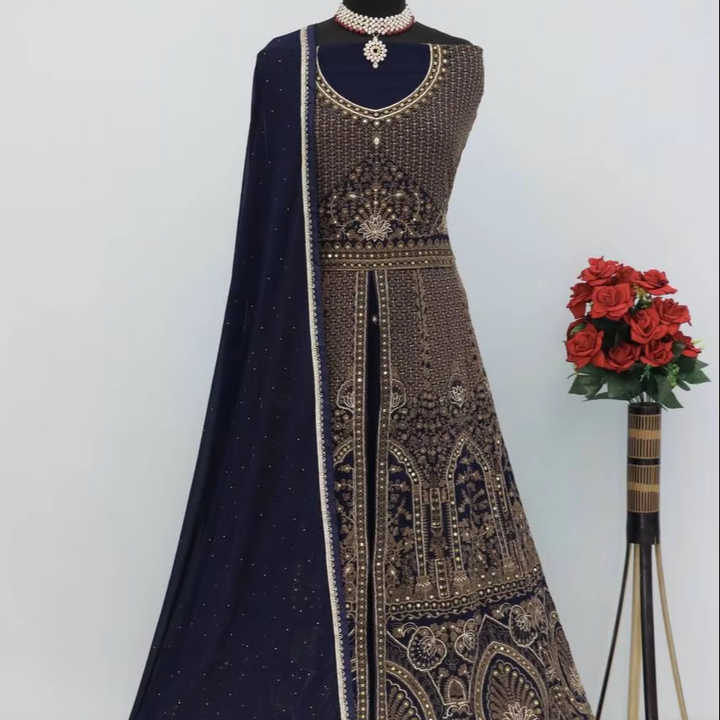 Georgette pishwas ที่สง่างามด้วยการปักด้ายหลาย, รายละเอียดเลื่อม, dupatta หนัก | เย็บกึ่ง | เหมาะสำหรับโอกาส