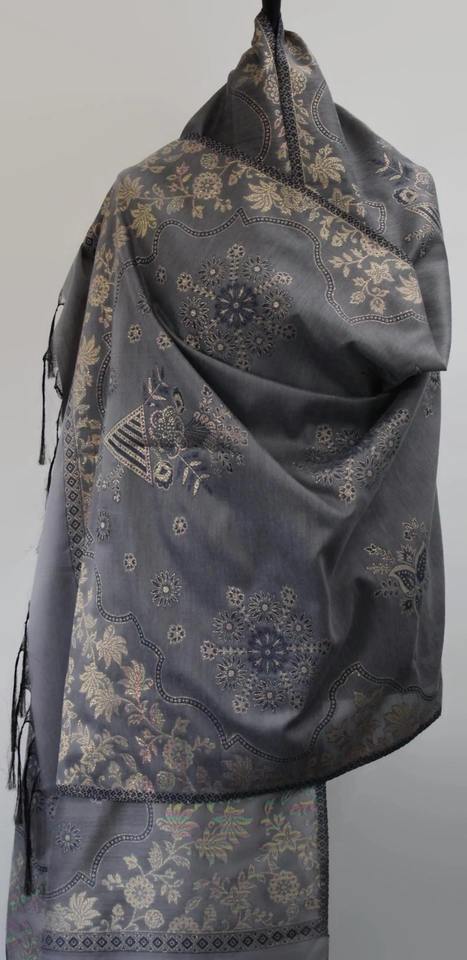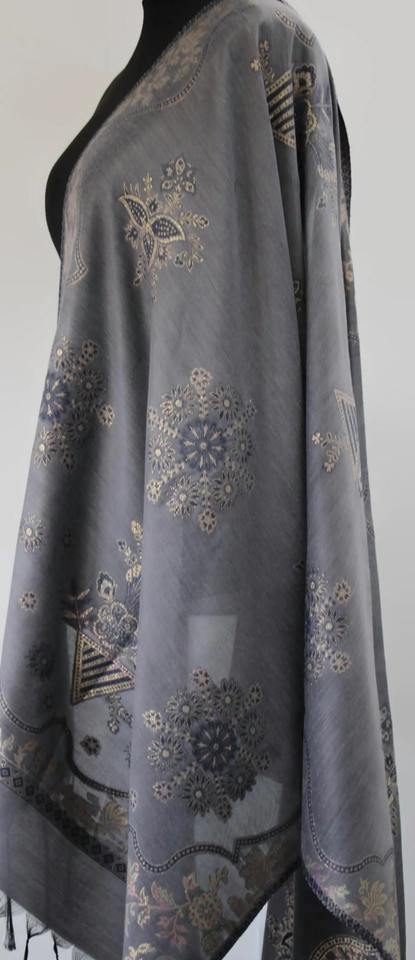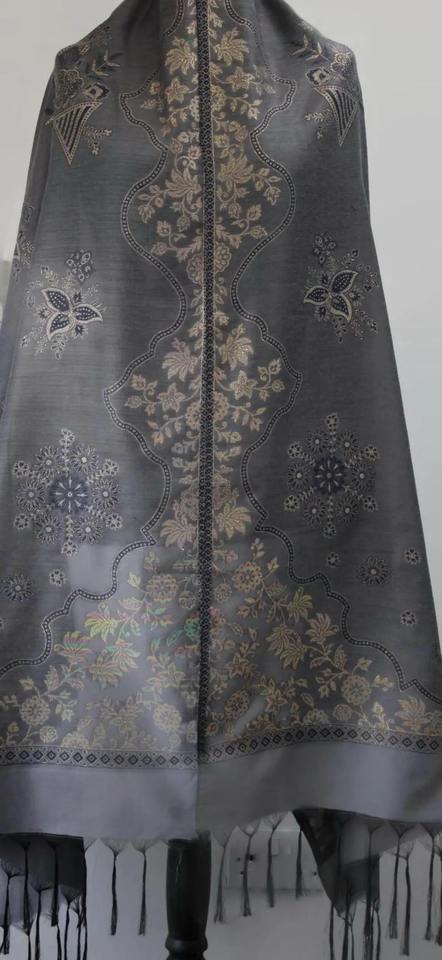 ผ้าคลุมไหล่กำมะหยี่โพลีเอสเตอร์สีเทาสุดหรูสำหรับผู้หญิง ผ้าคลุมอุ่นนุ่มสำหรับฤดูหนาว ปักลายแบบดั้งเดิม สวยสง่าสำหรับทุกวัน