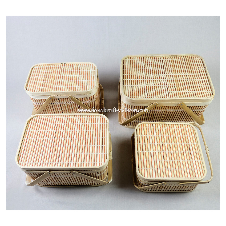 ตะกร้าปิกนิกทำจากไม้ไผ่สานด้วยมือสวยงามหลากสียืดหยุ่นได้สำหรับห้องครัวโรงแรมบ้านทำด้วยมือ