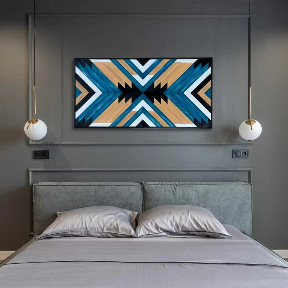 สไตล์โบฮีเมียนศิลปะโมเสคไม้รูปทรงเรขาคณิตทันสมัยสวยงาม