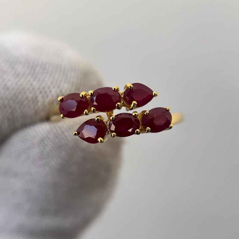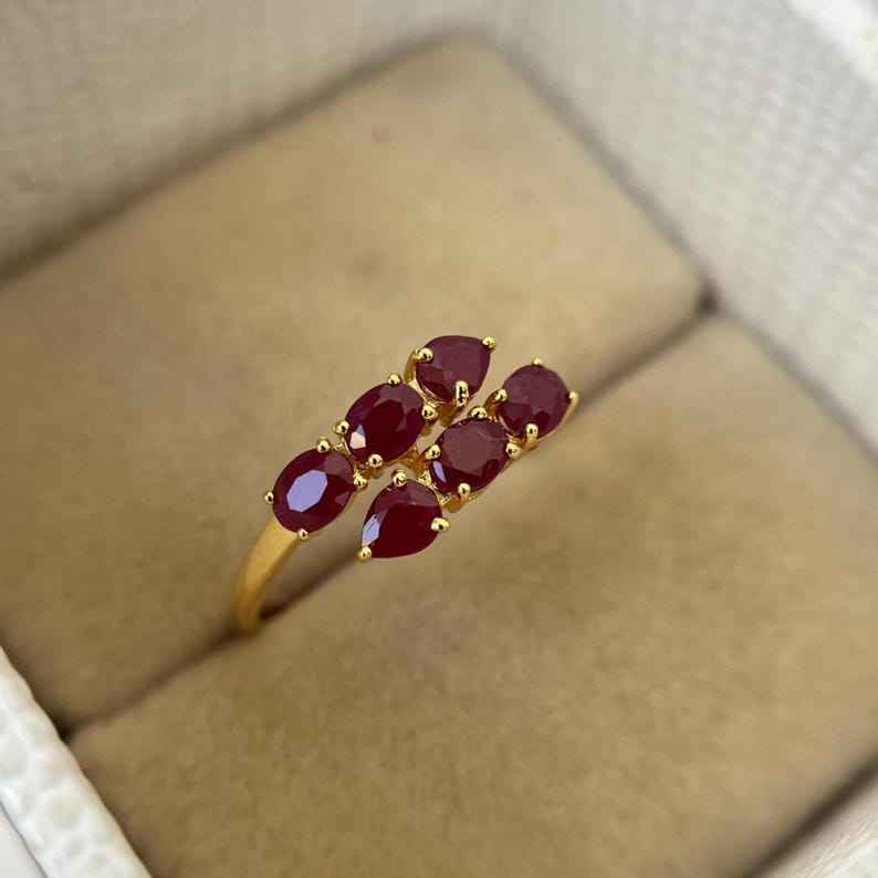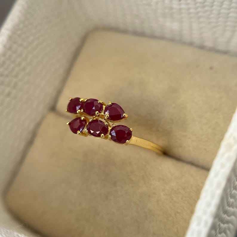 แหวนทับทิมทรงสวยหรู ทับทิมธรรมชาติ แหวนหมั้น เงินแท้ 925 ชุบทอง 14K แหวนแต่งงานสไตล์อาร์ตเดโค แหวนคลาสสิกสำหรับผู้หญิง