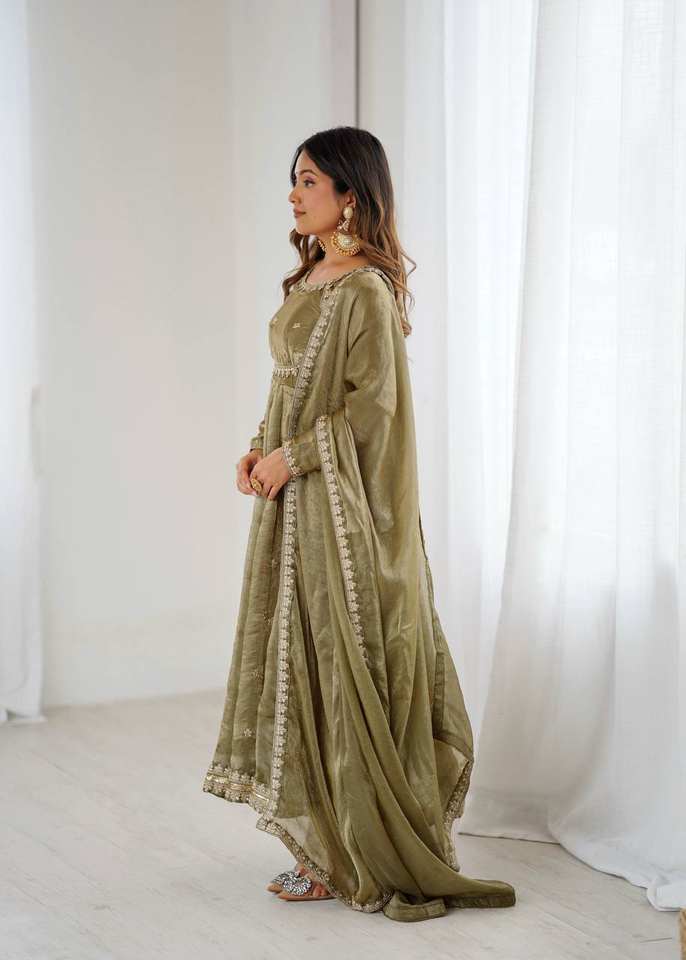 Graceful Sequins Work Fandy Silk Gown with Matching Dupatta
