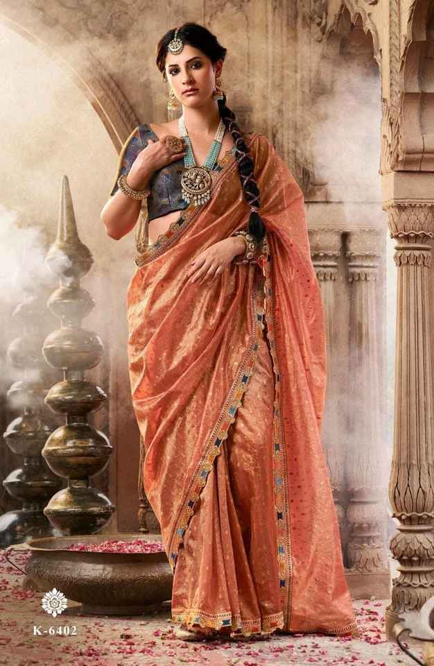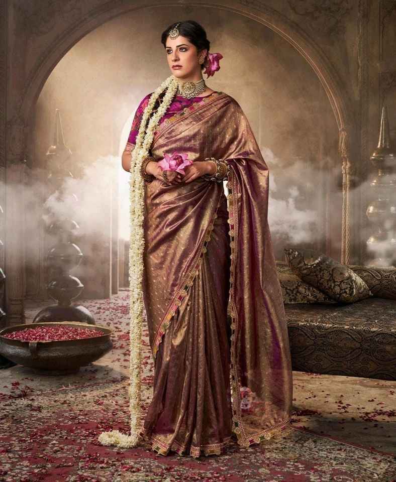 Graceful Traditional Silk Tissue Saree Beautiful Multicolored Lace Heavy Designer Blouse Indian/Pakistani Ethnic Wedding Party