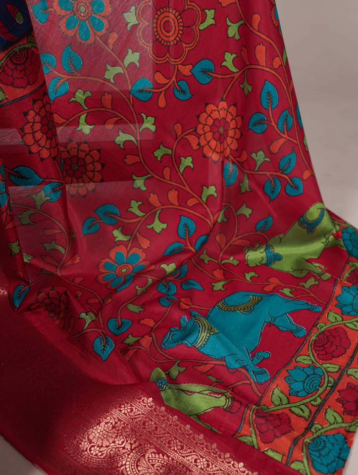 ส่าหรีผ้าไหมทัสซาร์ที่มีการออกแบบและพิมพ์ลาย zari ด้วยเสื้อขอบแบบไม่มีการเย็บ