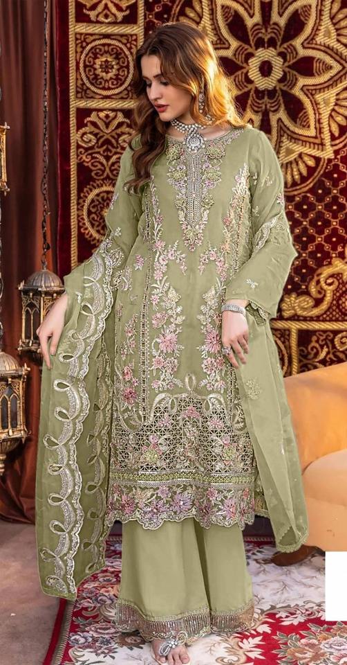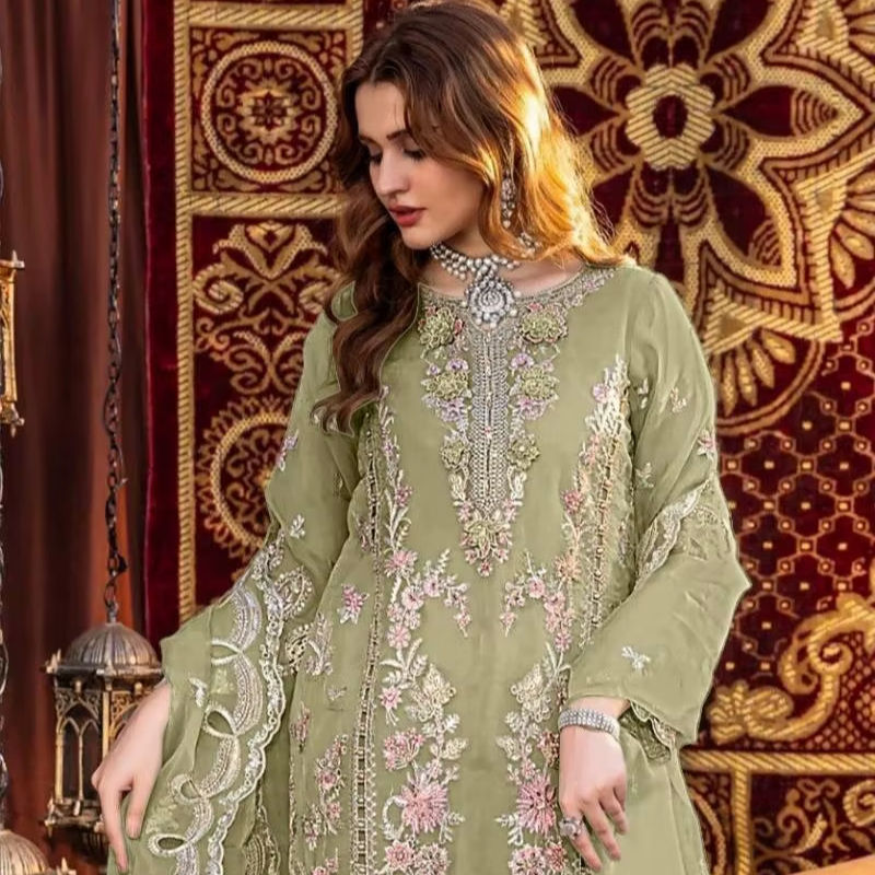 ชุดซาลวาร์คอเมซผ้าออร์แกนซ่าที่สง่างามของผู้หญิงที่มีการปักที่ละเอียดอ่อนแบบดั้งเดิมสำหรับงานเลี้ยงสังสรรค์ที่สง่างาม