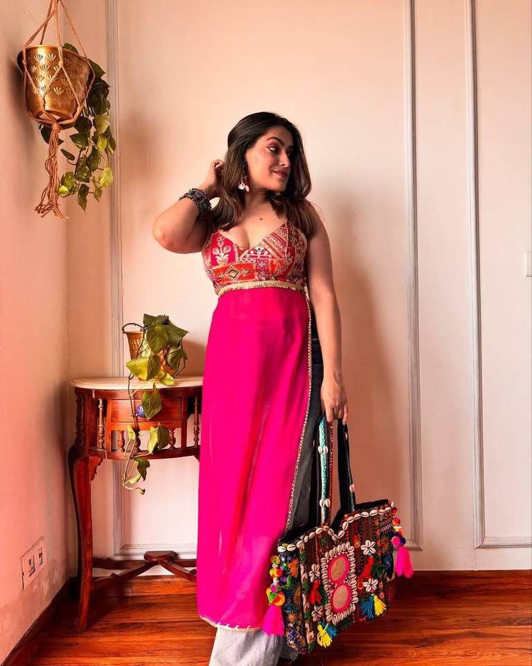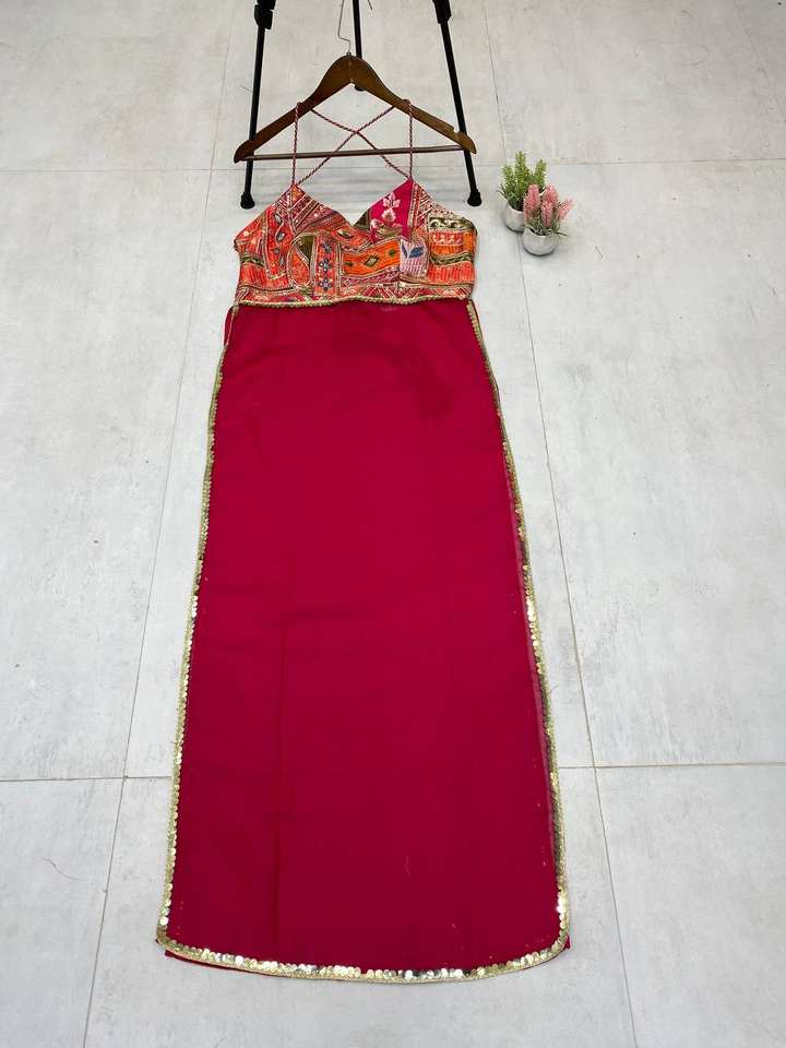ชุดคุर्ติผ้าจอร์เจตต์ลายชาติพันธุ์ ดีไซน์หรูหรา พร้อมงานปักเลื่อม ดีไซน์เปิดหลัง แต่งด้วยดีไซน์ดอริและพู่ห้อย พร้อมซับในเนื้อผ้านุ่ม