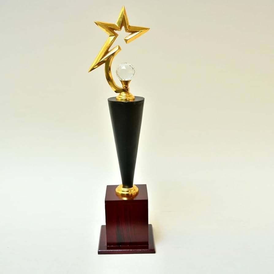 ถ้วยรางวัลรูปดาวลายเกลียวสีทองอันงดงามพร้อมคริสตัลด้านกลาง มีจำหน่ายในราคาขายส่ง
