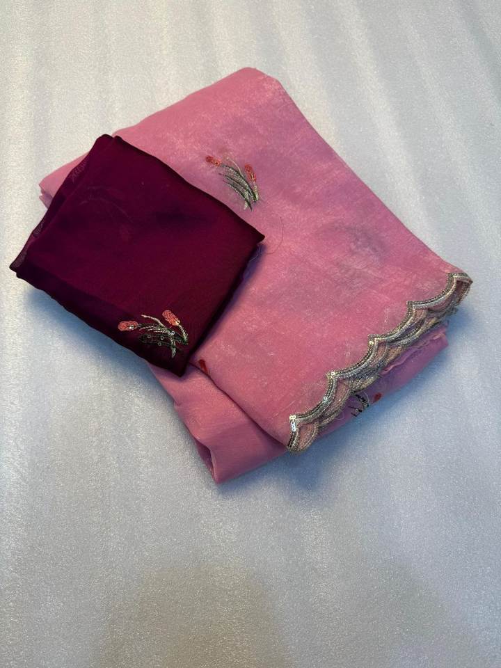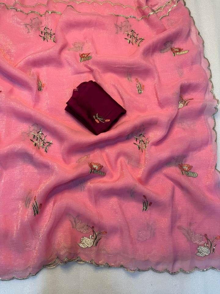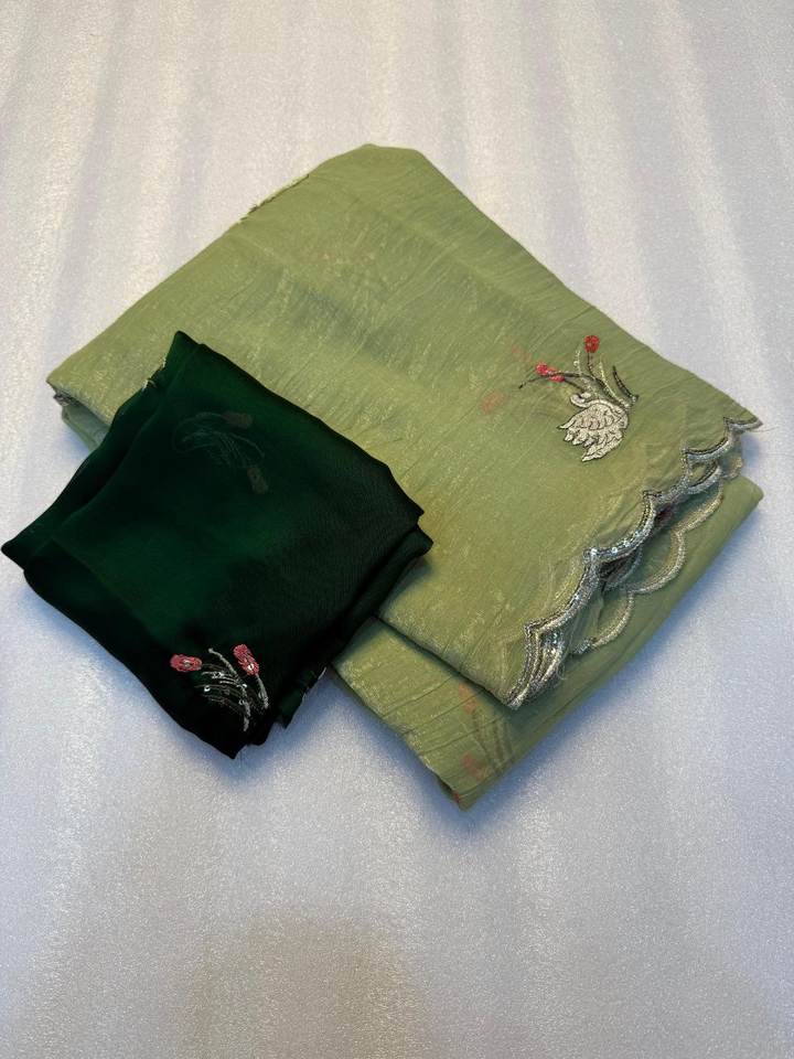 ผ้าไหมจอร์เจตต์ลายส่าหรีสไตล์กันจิววารัม ประดับด้วยขนเฟอร์เทียม ดีไซน์สวยงามสง่างามโดดเด่นมีศิลปะ สามารถใส่ได้สองด้าน เหมาะสำหรับงานปาร์ตี้