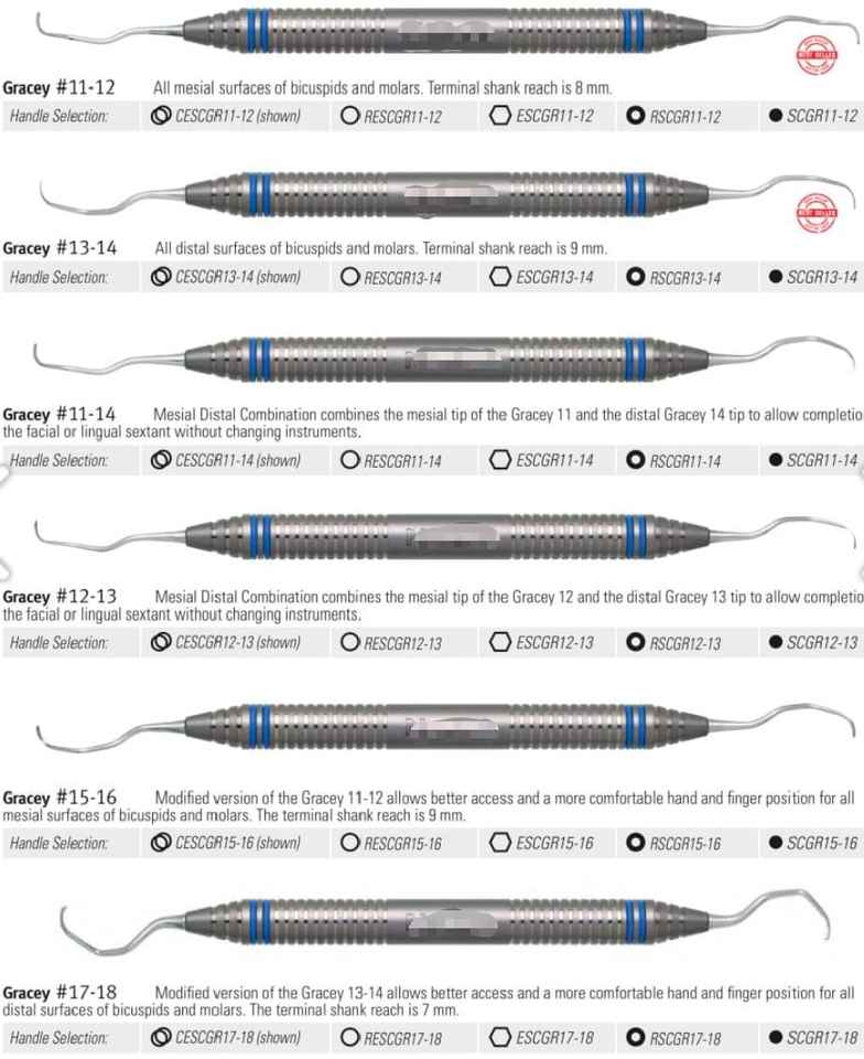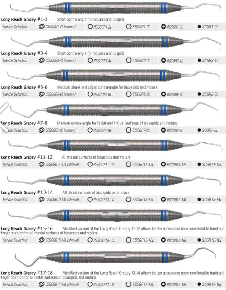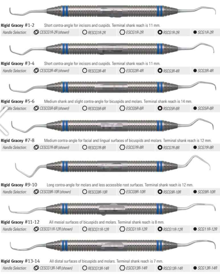 เครื่องมือผ่าตัดทางทันตกรรมแบบแมนนวลสแตนเลสสตีลยี่ห้อเกรซี่รุ่นขายดี ใบมีดยาว คิวเร็ตต์สำหรับงานทันตกรรม เครื่องขูดหินปูนแบบใช้ความร้อน ได้รับมาตรฐาน CE