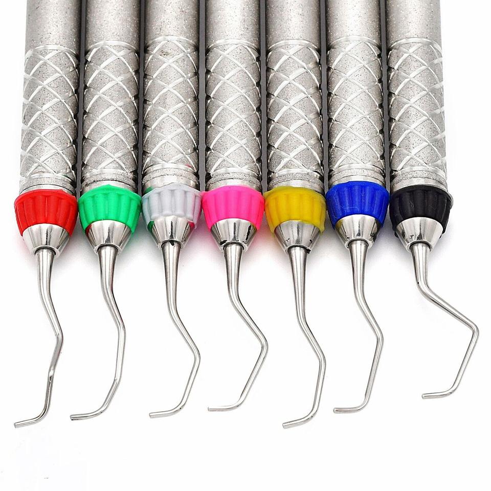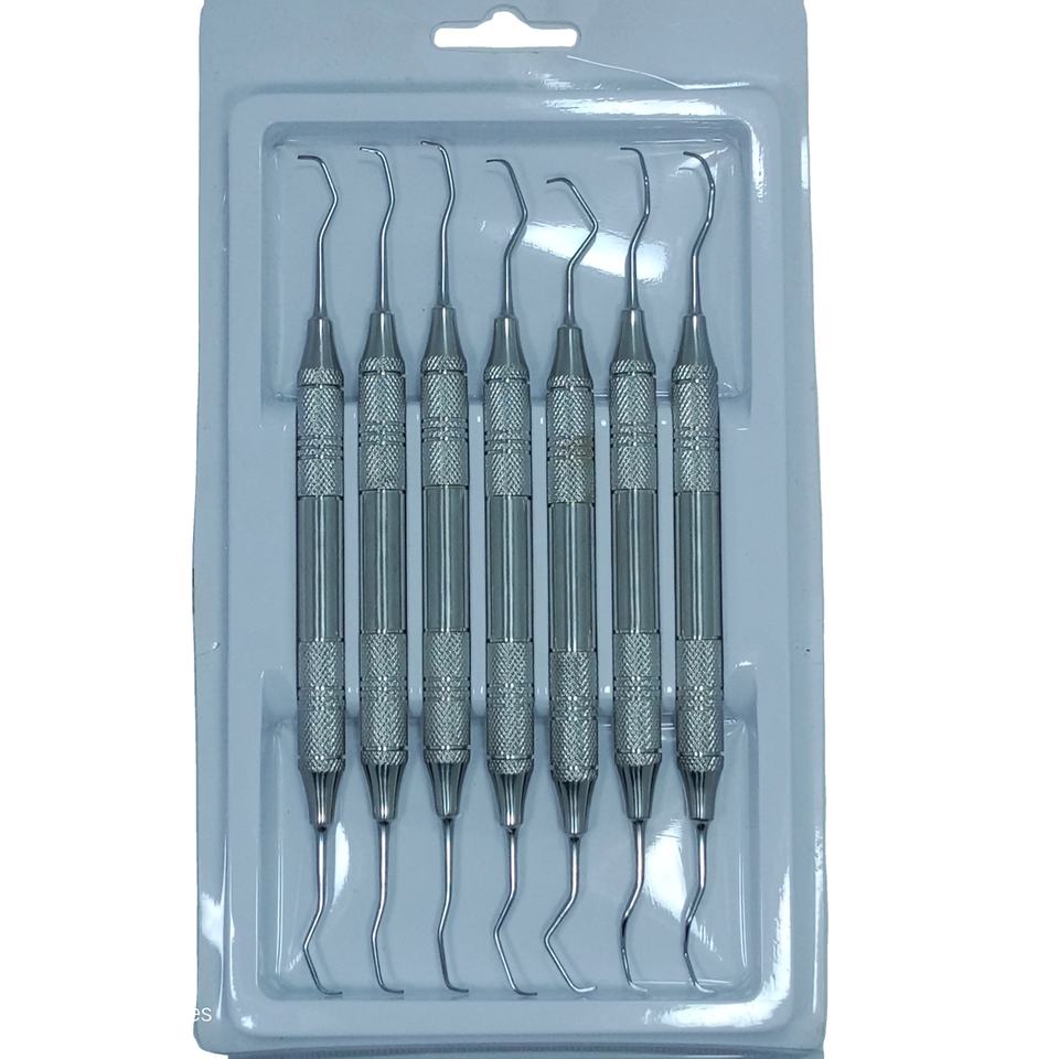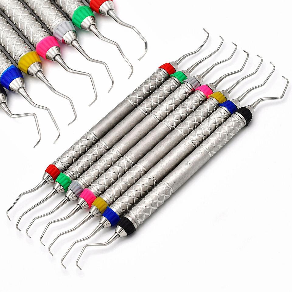 ชุดเครื่องมืออุดฟันคอมโพสิตแบบปลายคู่ ด้ามจับกลวงสีทอง ยี่ห้อเกรซี่ คิวเร็ต สำหรับงานทันตกรรม พร้อมเครื่องมือขูดหินปูนแบบแมนนวล