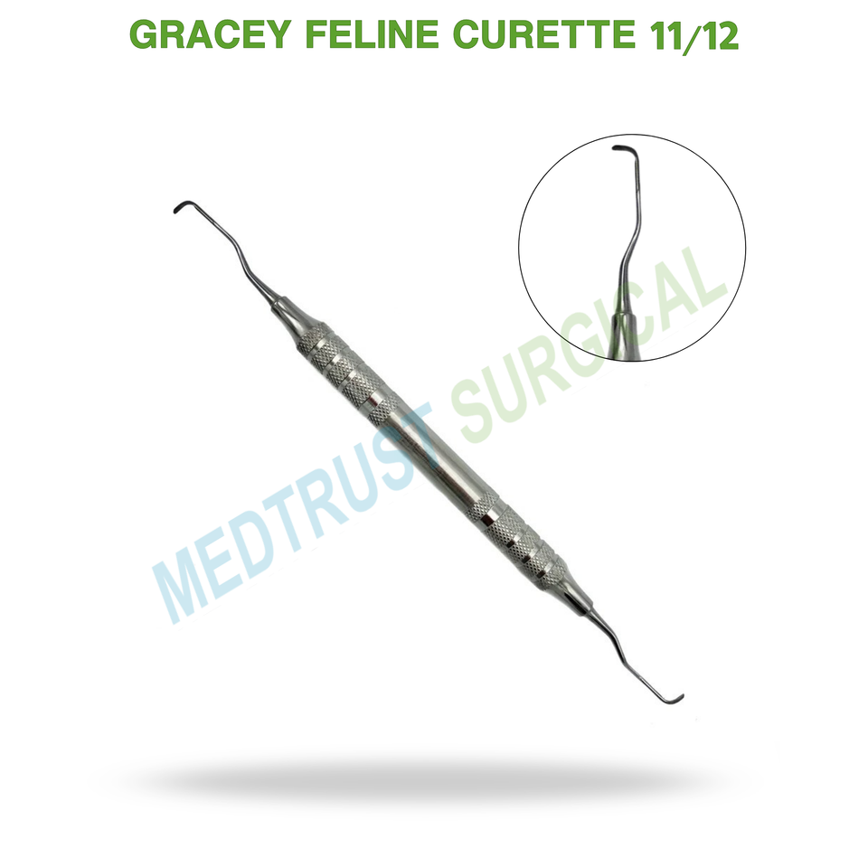 เครื่องมือขูดหินปูน Gracey Feline Curette 11 12 สำหรับสัตวแพทย์ ใช้สำหรับขูดหินปูนใต้เหงือกและขูดหน้าผากฟันแมว