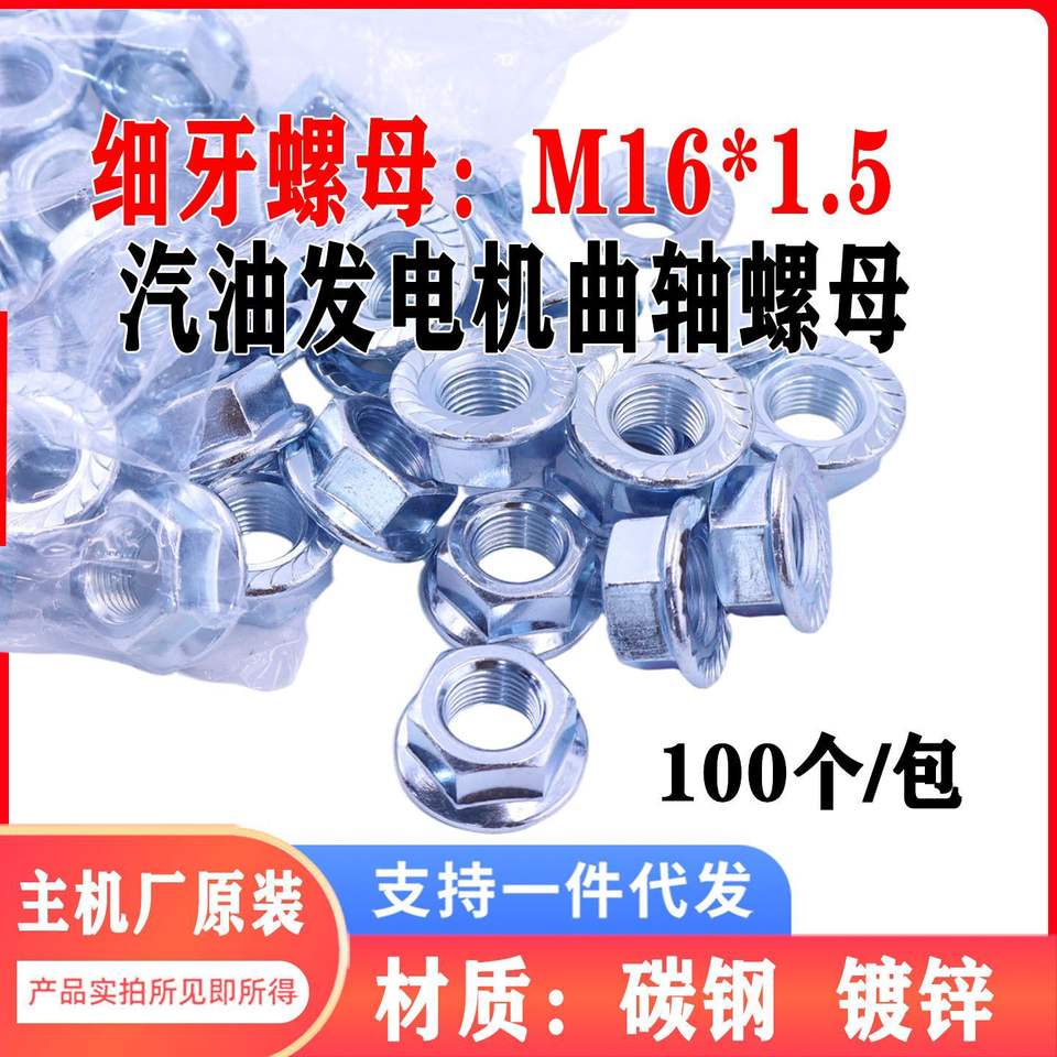 น็อตหน้าแปลนเกลียวละเอียด M16*1.5 เหล็กกล้าคาร์บอนความแข็งแรงสูง เกรด 8 บรรจุ 100 ชิ้น สำหรับเครื่องกำเนิดไฟฟ้าเบนซิน พร้อมคุณสมบัติป้องกันการคลายตัว