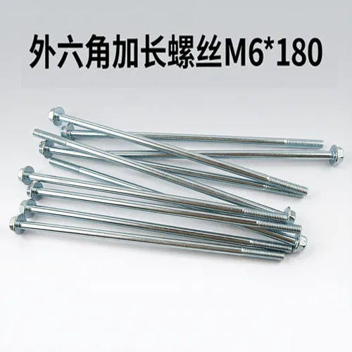 สลักเกลียวยาว M6*180 มาตรฐาน GB5789 ชุบสังกะสี เหล็กกล้าคาร์บอน หัวหกเหลี่ยม สำหรับยึดมอเตอร์ อะไหล่เครื่องยนต์เบนซิน ดีเซล ป้องกันสนิม