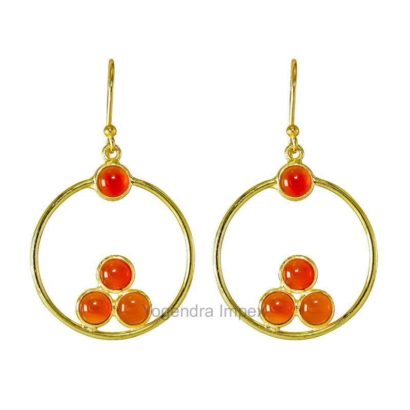 พลอยคาร์เนเลี่ยนธรรมชาติเกรด925ต่างหูเงินสเตอร์ลิงต่างหูโบโฮ/พลอยสีเหลืองทรงกลมต่างหูแฟชั่นแบบห้อยสำหรับผู้หญิง