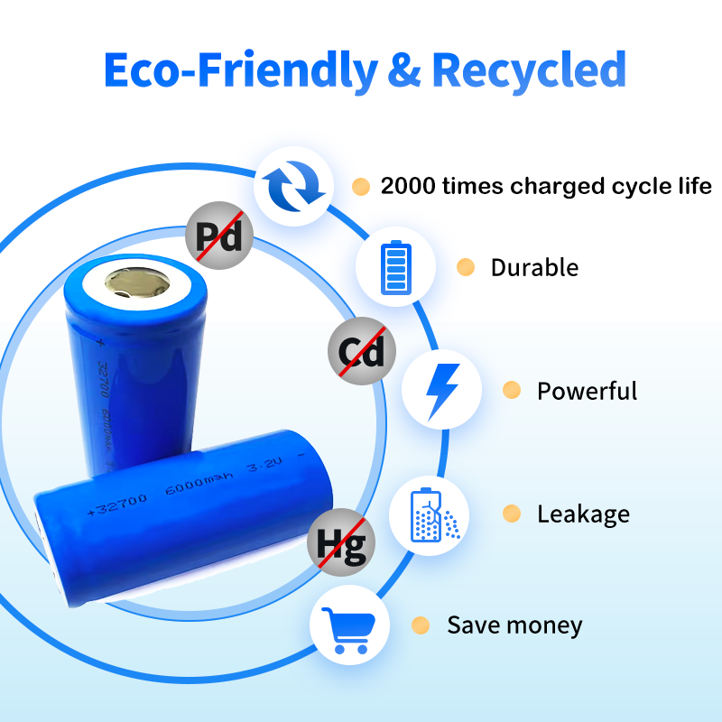 แบตเตอรี่แบบชาร์จได้ เกรด A Lifepo4 32650 32700 3.2v 6000mah สำหรับไฟโซลาร์เซลล์