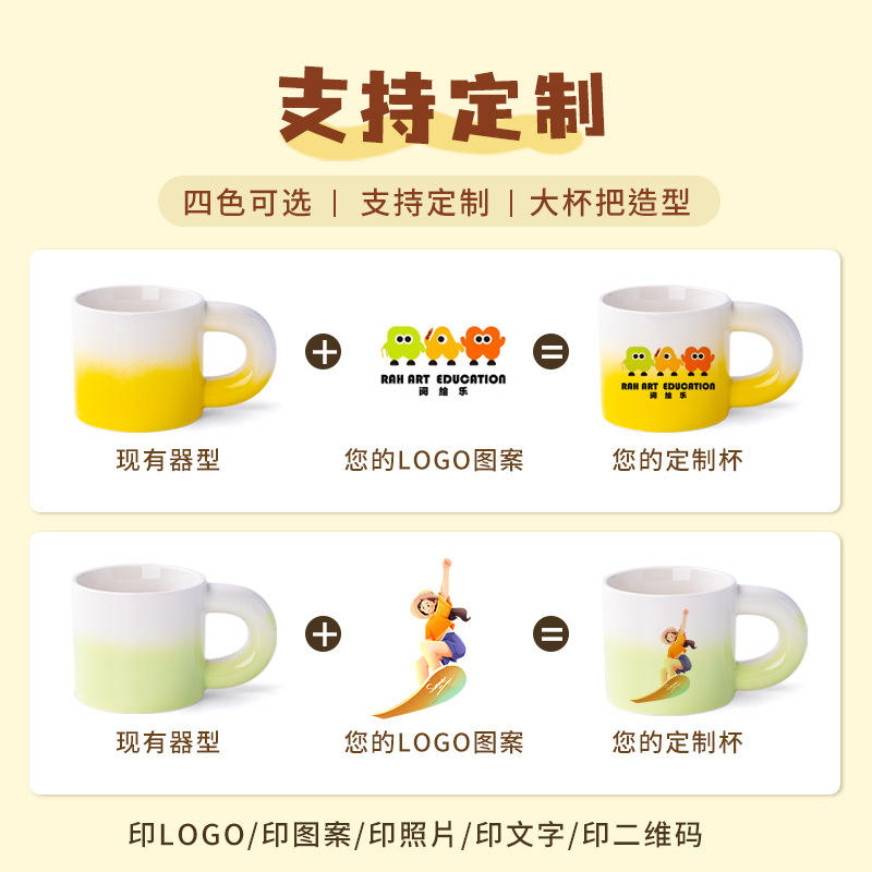 แก้วเซรามิกไล่สี 330 มล. พร้อมหูจับ ใช้ซ้ำได้ สำหรับกาแฟ ชา ของขวัญ