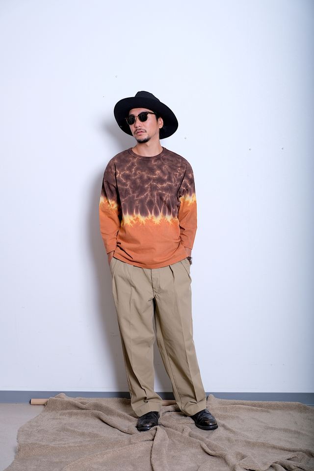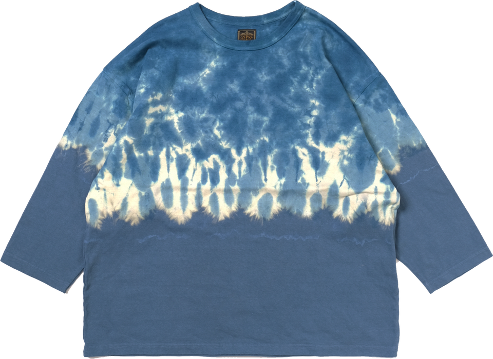 เสื้อยืดผ้าฝ้ายย้อมสีไล่ระดับสีโอเวอร์ไซส์สไตล์ญี่ปุ่นเสื้อคอได้รับการออกแบบ