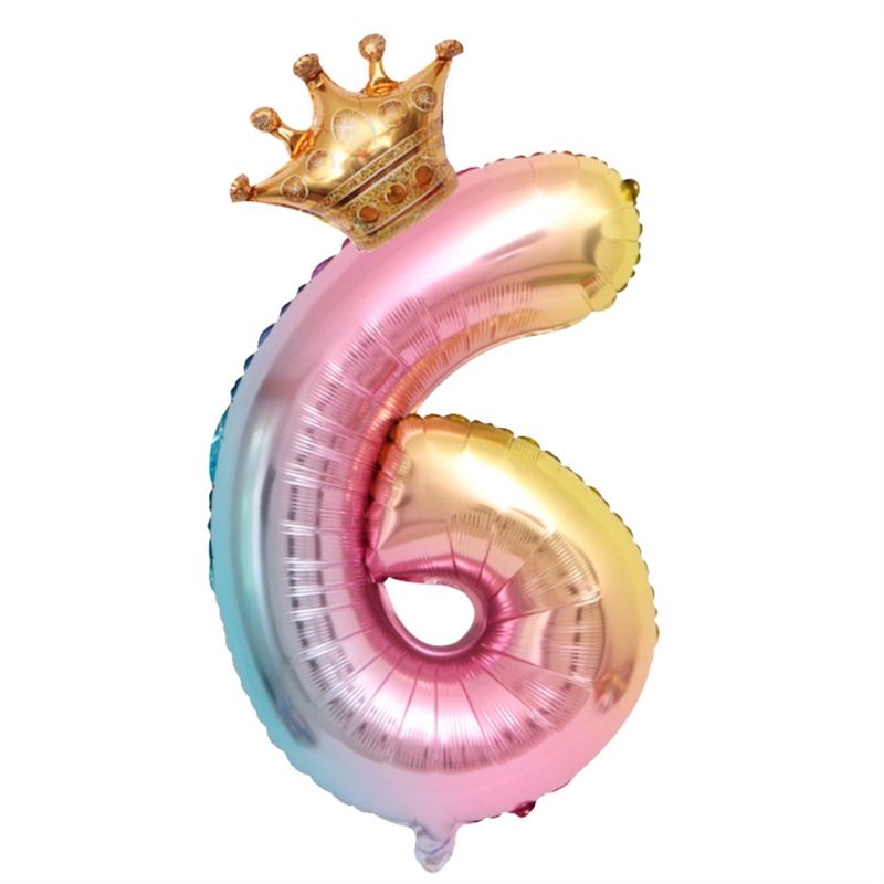 เครื่องใช้บนโต๊ะอาหารแบบใช้แล้วทิ้งแบบไล่ระดับสีพร้อมลูกโป่งรูปมงกุฎสำหรับอุปกรณ์ตกแต่งงานเลี้ยงวันเกิด