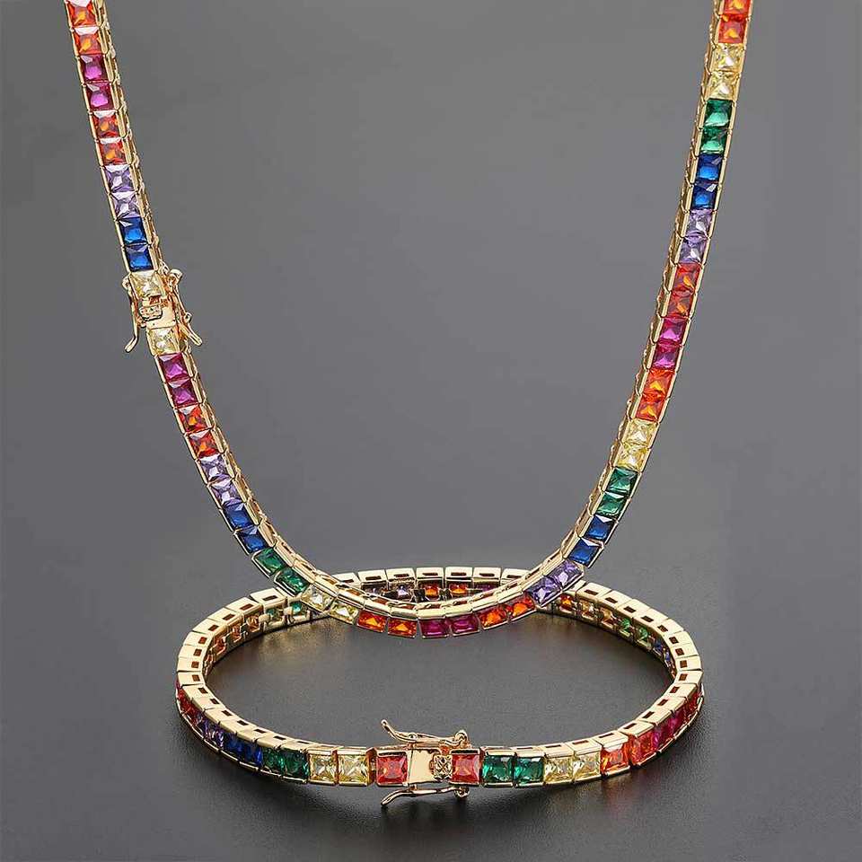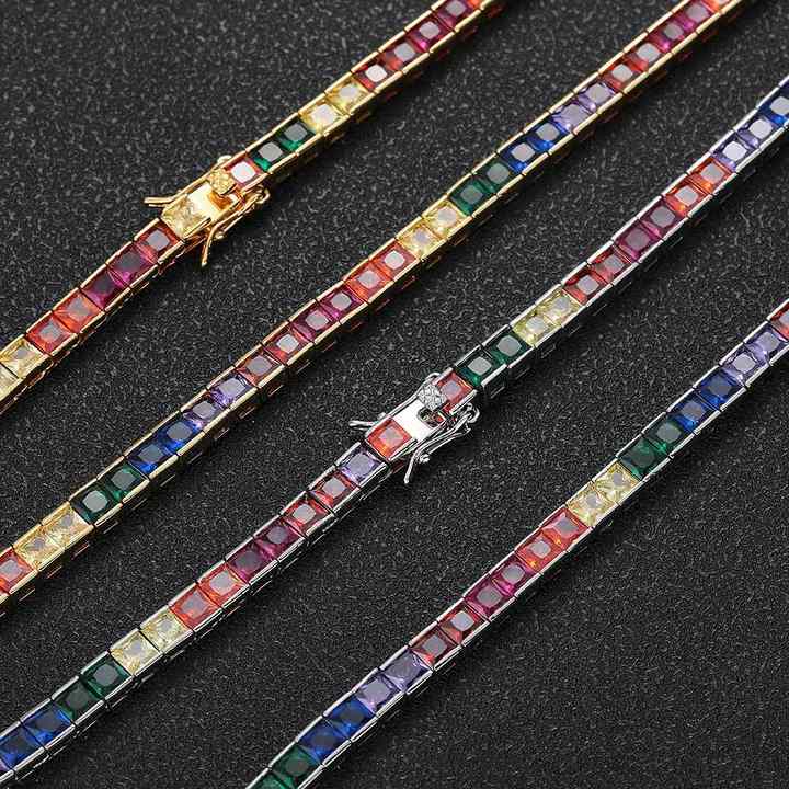 ชุดเครื่องประดับทองแดงชุบทองประดับเพชรซิร์คอนทรงเจ้าหญิงสีรุ้งไล่เฉดประกายระยิบระยับ ป้องกันการแพ้ ไม่หมองคล้ำ
