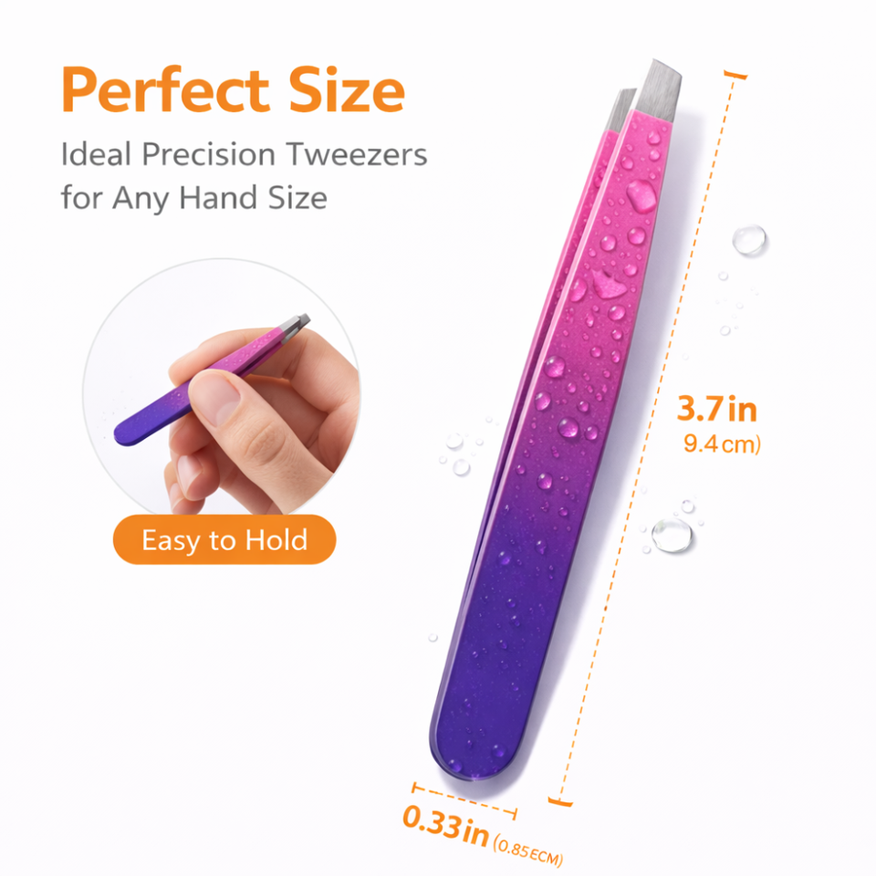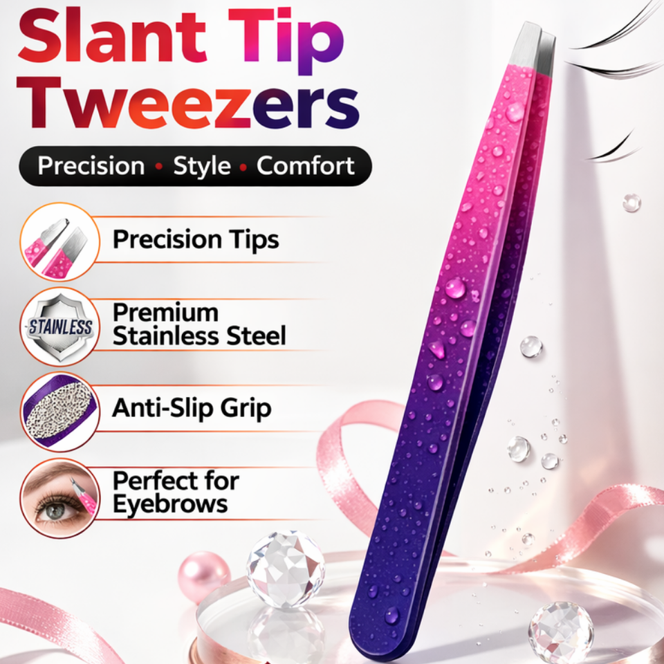 แหนบดึงขนคิ้วปลายเฉียงสแตนเลสแบบไล่เฉดสี ป้องกันการลื่น ป้องกันไฟฟ้าสถิต เป็นมิตรกับสิ่งแวดล้อม เครื่องมือเสริมความงามที่แม่นยำ ใช้ได้ทั้งในร้านเสริมสวยและที่บ้าน คุณภาพสูง