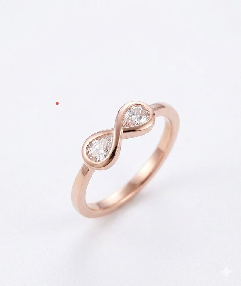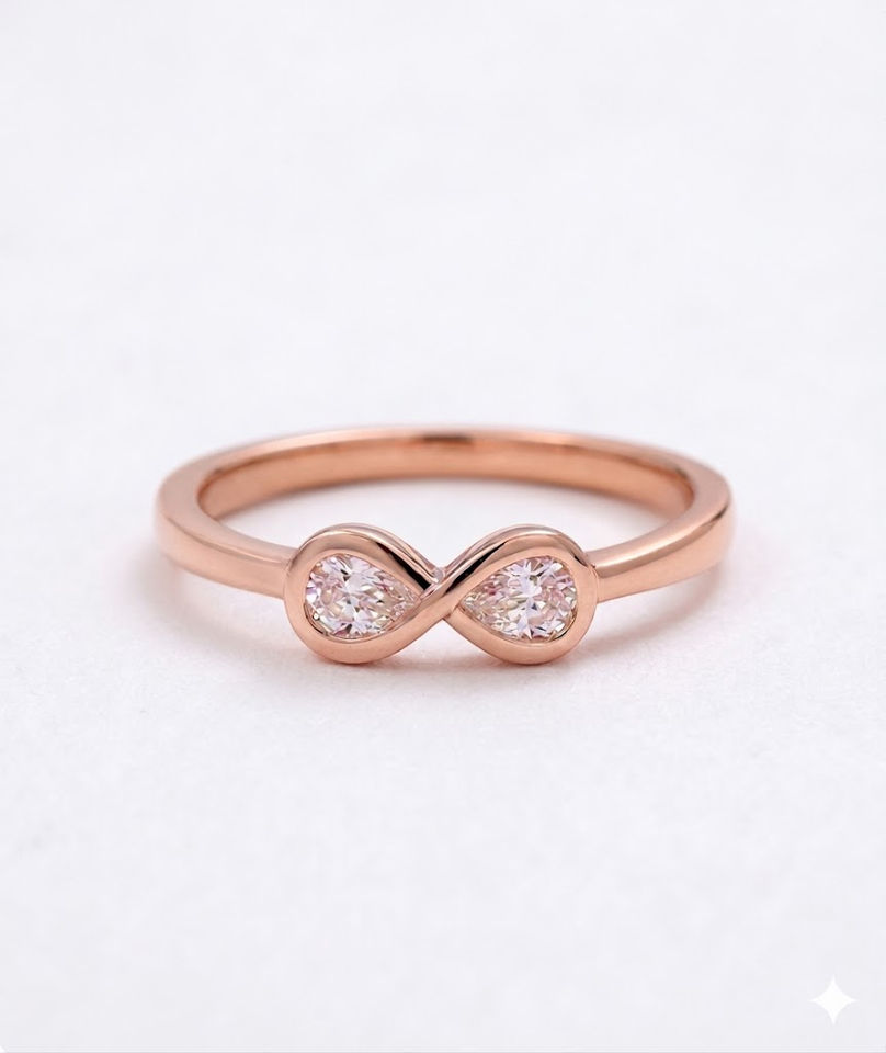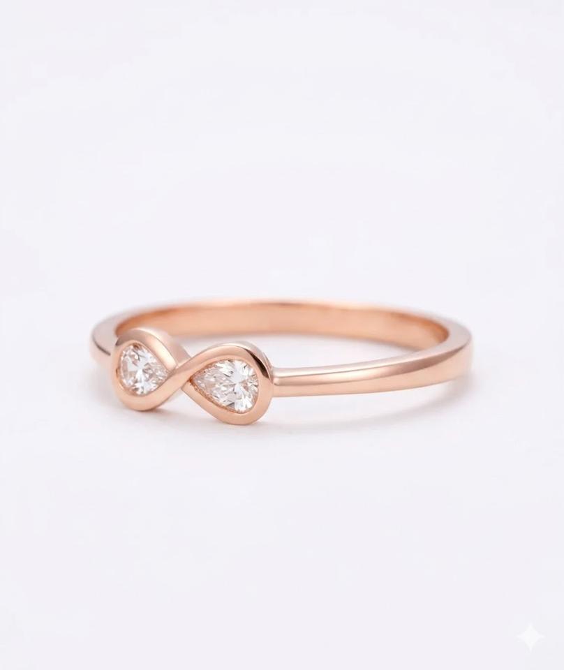 แหวนเพชรรูปทรงอินฟินิตี้ประดับเพชรเพียร์แล็บโกรว์เคลือบทองคำชมพู 14K ดีไซน์เรียบหรูสำหรับใส่ในชีวิตประจำวันและงานปาร์ตี้สำหรับเธอ