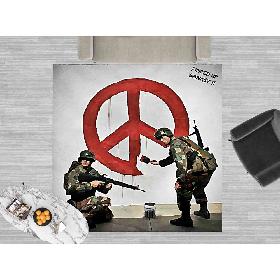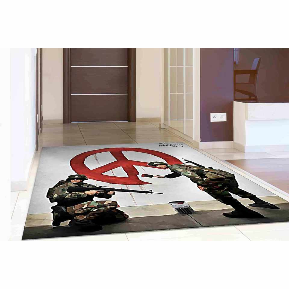พรมลายกราฟฟิตีอาร์ต แบงก์ซี่ ลายทหาร พรมพิมพ์ลายกันลื่น พร้อมพรมขนนุ่ม