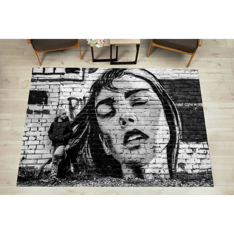 พรมเชนิลล์ลายกราฟฟิตี้เกิร์ล: พรมตกแต่งสไตล์โมเดิร์น พรมพิมพ์ลาย พรมขนนุ่ม