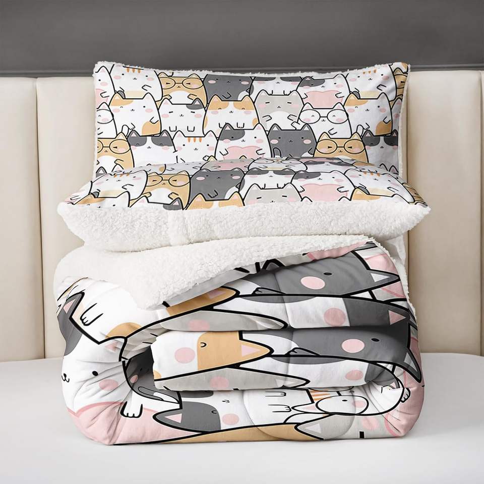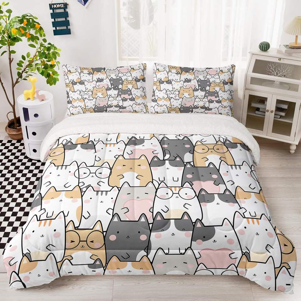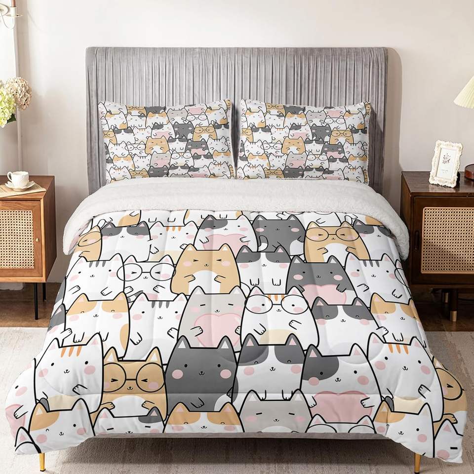 ชุดผ้าขนแกะสไตล์กราฟฟิตี้สำหรับเด็กชายขนาดเตียงคู่ผ้าขนแกะเชอร์ปาพร้อมผ้าคลุมเตียง1และปลอกหมอน2ใบ
