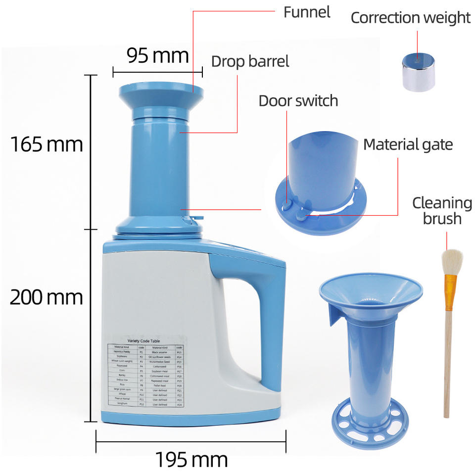 เครื่องวัดความชื้นเมล็ดพืช LDS 1G เครื่องวัดดิจิตอลแบบพกพาสำหรับข้าวโพด ข้าว ข้าวสาลี ความแม่นยำ 3-35% ตัวเครื่องทำจากพลาสติก พร้อมกรวยและแปรง