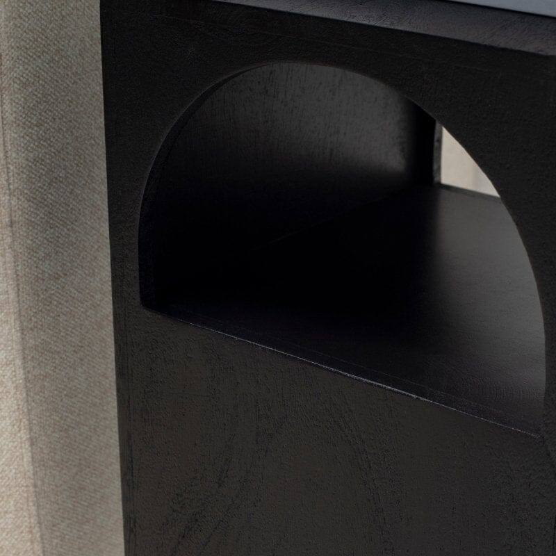 ลายเมล็ดพืชเพิ่มพื้นที่ใช้สอยห้องนอนงานฝีมือคุณภาพสูงทาสีโต๊ะข้างสีดำแบบโค้งสำหรับเฟอร์นิเจอร์งานฝีมือ