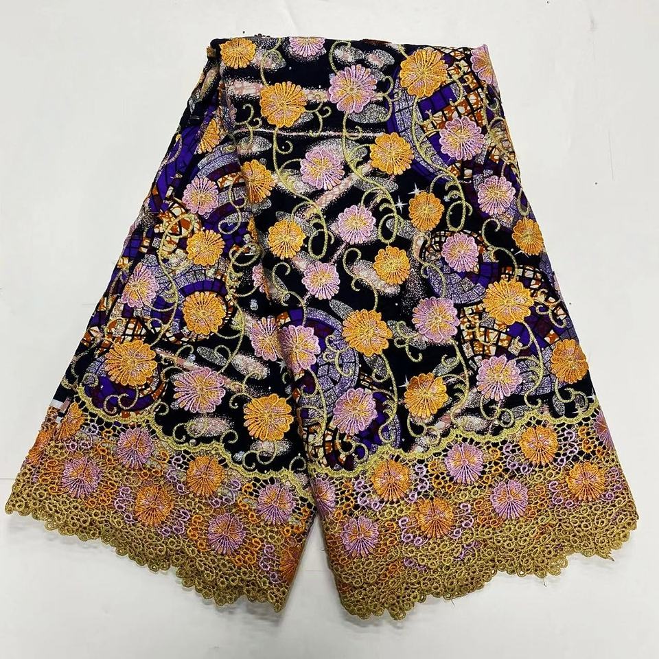 ผ้าลูกไม้ฝ้ายออร์แกนิกแอฟริกัน 3 มิติ ลายปักสุดฮิตสำหรับงานแต่งงานและชุดงานเลี้ยง