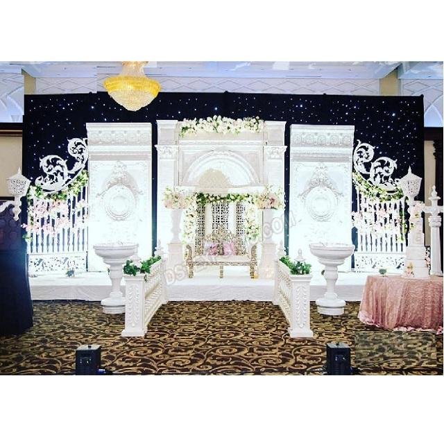 แกรนด์เอเชียสีขาวตกแต่งเวทีงานแต่งงานคริสเตียนสีขาว FRP ตกแต่งเวทีระเบียงพระราชสไตล์เวทีแต่งงานสีขาว