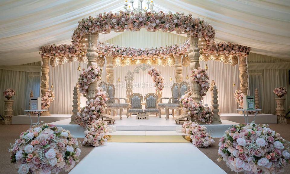 Grand Double Pole Mandap Cum Stage For Malaysian Weddings