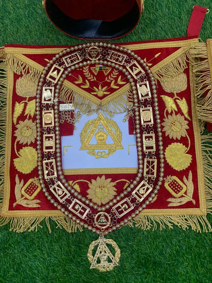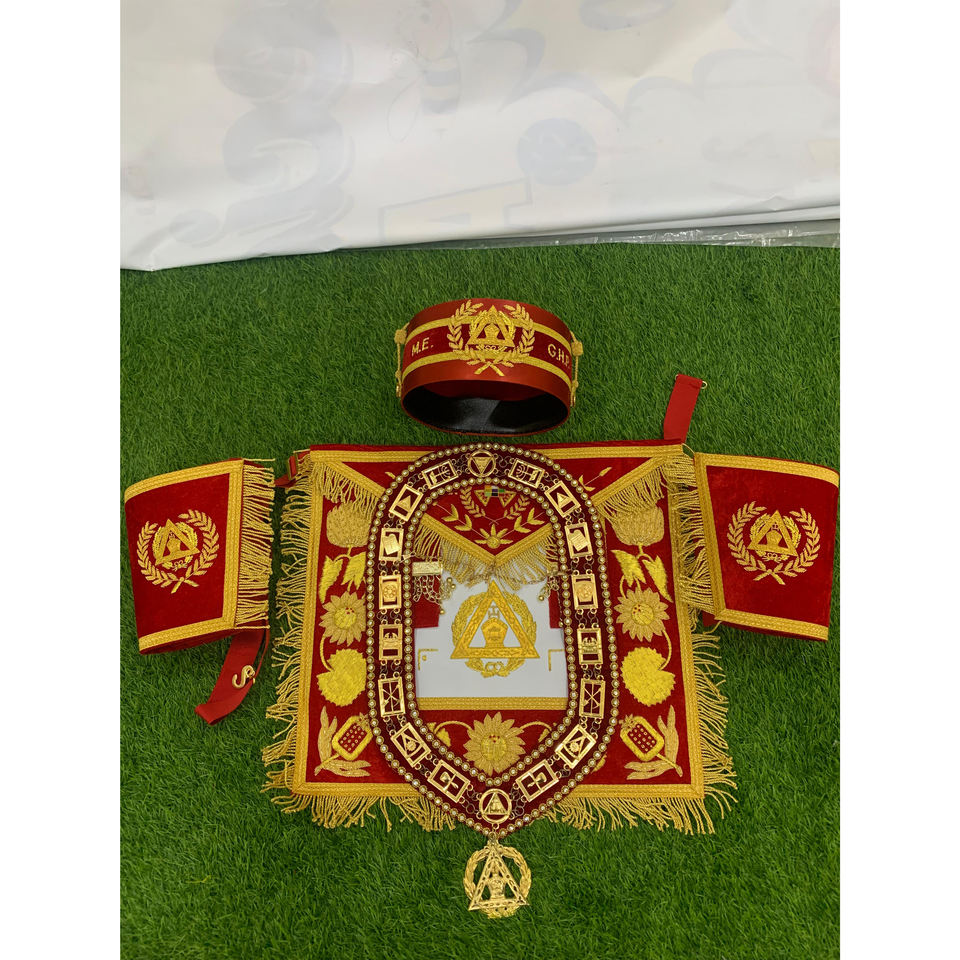 ผ้ากันเปื้อนนักบวชชั้นสูงที่มีปลอกคอและมงกุฎสีแดง