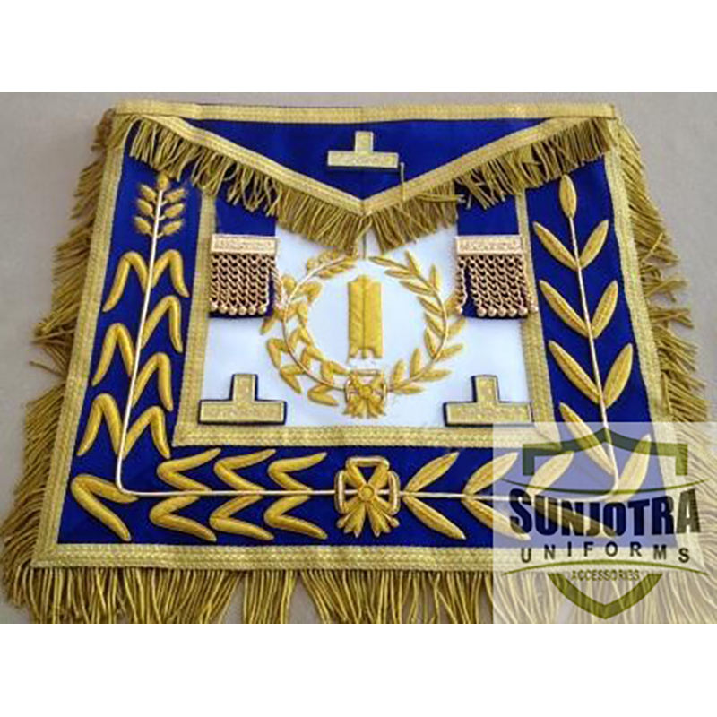 Grand Lodge ชุดเดรสของเจ้าหน้าที่ผ้ากันเปื้อนเย็บปักด้วยมือทำจากหนังแท้ขอบทองแท่ง