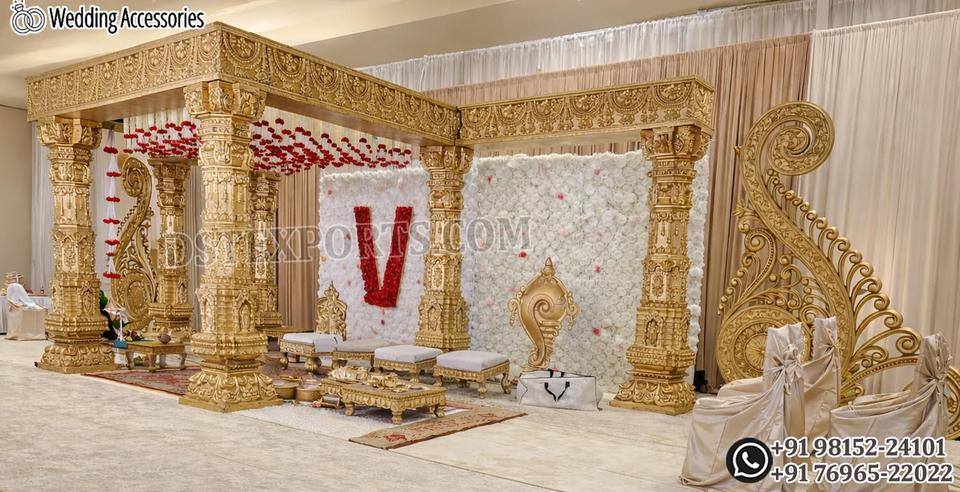 มณฑปงานแต่งงานแบบมหากษัตริย์สไตล์อินเดียใต้ พร้อมหนวดประดับแบบดั้งเดิม มณฑปงานแต่งงานแบบทามิล งานฝีมือระดับพรีเมียมจากอินเดียใต้ ส่งตรงถึงสหรัฐอเมริกา