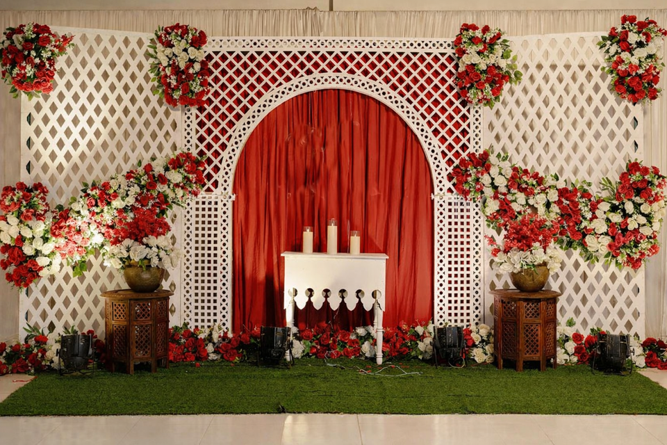 เวทีต้อนรับสไตล์กุร์บักราชวงศ์อิสลามพร้อมแผงเลเซอร์ ฉากหลังแบบตัดด้วยเลเซอร์สไตล์กุร์บักราชวงศ์อินเดีย แผงฉากหลังเวทีต้อนรับสุดหรู สหรัฐอเมริกา