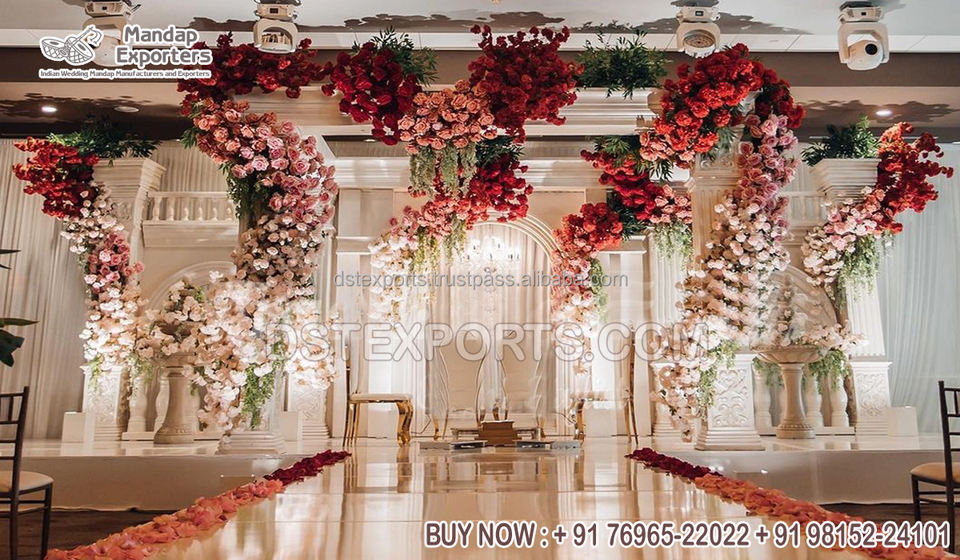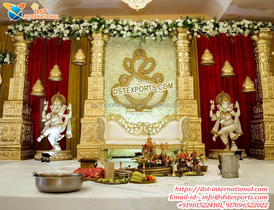 งานแต่งงานธีมมูกัลยิ่งยวด Jharokha เวที Mandap เวทีที่สวยงามสําหรับงานแต่งงานของมาเลเซียเวทีทองคําอินเดียใต้สําหรับงานแต่งงาน