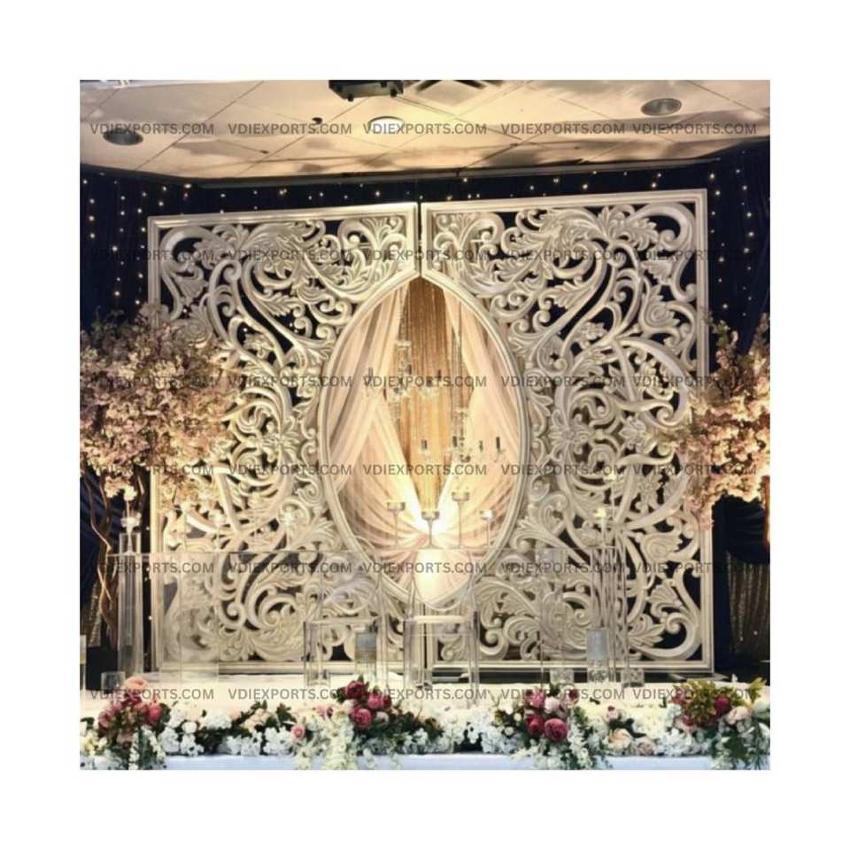 ฉากหลังงานแต่งงานอินเดียแบบแกรนด์รอยัล ชุดแผงฉากหลังแกะสลักด้วยมือแบบดั้งเดิม ฉากหลังเวทีลายจาลี หรูหราสำหรับส่งออก
