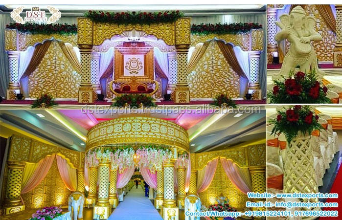 งานแต่งงานของชาวเอเชียตอนใต้แกรนด์เเทนเรีย Mandap เทศกาลแต่งงานคู่บารมีผ้าใยแกะสลักดีไซน์ใหม่สำหรับงานแต่งงาน