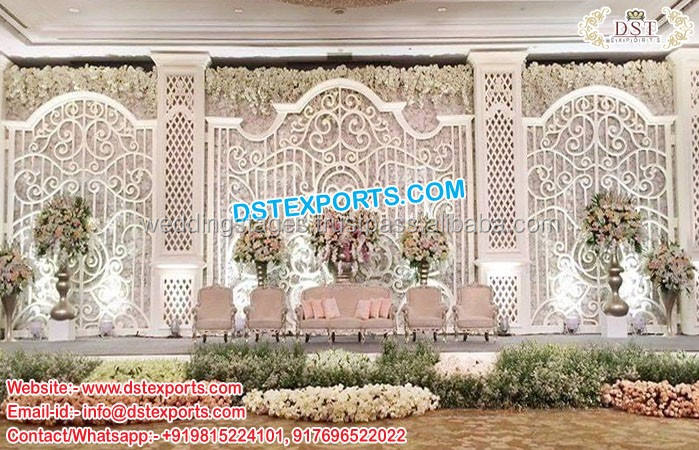 ฉากงานแต่งงานสุดอลังการ โครงไฟเบอร์สีทอง ฉากหลังงานแต่งงานขนาดใหญ่ โครงหลังเวทีงานแต่งงานอินเดียที่สวยงามจากมาเลเซียและแคนาดา